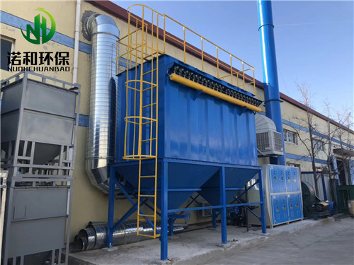 该公司于经理联系到我们泊头诺和环保设备有限公司,我公司通过现场实际情况,设计采用了脉冲布袋除尘器+uv光氧催化废气处理设备工艺流程处理: